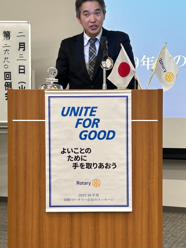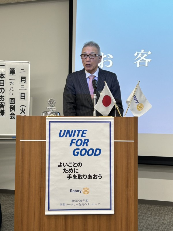 今月はロータリーの「平和と紛争予防・紛争解決月間」です。国際情勢は依然不安定で、我が国の安全保障環境についてもさまざまな見方が飛び交っています。こうした時代だからこそ、私たちロータリアンが平和の尊さを胸に刻み、冷静で良識ある行動をもって地域に貢献していくことが重要だと感じております。平和で安全、そして希望ある未来が築かれることを心より祈念いたします。